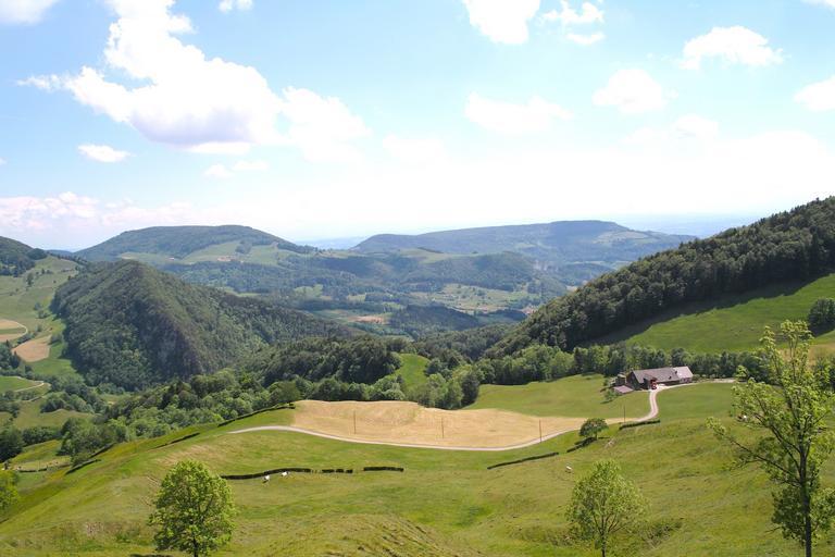 Keywords: switzerland landscape mountains sky clouds valley ravine grass forest trees woods vegetation summer spring beautiful peaceful nature outside