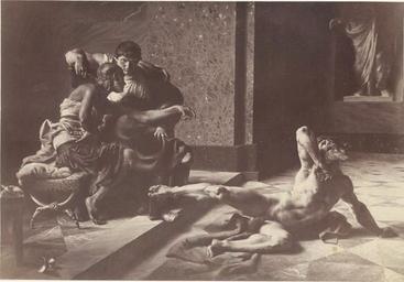 | Keywords: Sylvestre Locuste essaye le poison(2).jpg Joseph-Noël Sylvestre Locusta testet in Neros Gegenwart das für Britannicus vorbereitete Gift Locuste essaye en présence de Néron le poison préparé pour Britannicus ; auf dem Boden windet sich der Sklave der das Gift zu sich nehmen mußte Erworben vom Museum von Luxemburg und dem Museum von Amiens in Verwahrung gegeben déposé laut http //www latribunedelart com/Publications_2005/Sylvestre_443 htm La Tribune de l'Art Joseph-Noël Sylvestre Locusta testing in Nero's presence the poison prepared for Britannicus Locuste essaye en présence de Néron le poison préparé pour Britannicus ; on the ground is the slave who had to try the poison Acquired by the Museum of Luxembourg and deposited déposé at the Museum of Amiens according to http //www latribunedelart com/Publications_2005/Sylvestre_443 htm La Tribune de l'Art Joseph-Noël Sylvestre Locuste essaye en présence de Néron le poison préparé pour Britannicus; sur terre et l'esclave qui a du consommer le poison Acquis par le musée du Luxembourg et déposé au musée d ™Amiens selon http //www latribunedelart com/Publications_2005/Sylvestre_443 htm La Tribune de l'Art Photographie La planche mesure environ 46 x 62 cm; la photographie mesure environ 23 5 x 33 5 cm fr Album de photographies des oeuvres achetées par l'Etat intitulé Direction des Beaux-Arts Ouvrages commandés ou acquis par le Service des Beaux-Arts Salon de 1876 Photographié par G Michelez Oeuvres exposées au salon annuel organisé par le Ministère de l'Instruction publique et des Beaux-Arts Direction des Beaux-Arts en 1876 au Palais des Champs-Elysées à Paris Tirage photographique sur papier albuminé représentant - Locuste essaye en présence de Néron le poison préparé pour Britannicus tableau par Joseph Noël Sylvestre No 1921 obtient le prix du salon <br/> selon http //www culture gouv fr/public/mistral/caran_fr ACTION RETROUVER FIELD_98 MOTS 2dMAT VALUE_98 20histoire 20de 20Rome NUMBER 3 GRP 0 REQ 28 28histoire 20de 20Rome 29 20 3aMOTS 2dMAT 20 29 USRNAME nobody USRPWD 4 24 2534P SPEC 1 SYN 1 IMLY MAX1 1 MAX2 90 MAX3 100 DOM All culture gouv fr 1876 Creator Joseph-Noël Sylvestre Joseph-Noël Sylvestre 1847-1926 ; photographer Charles Louis Michelez Joseph-Noël Sylvestre 1847-1926 ; photographe Charles Louis Michelez mort en mai 1894 lower-resolution picture with somewhat different black-and-white colors 180px<br/> see also 180px PD-old Joseph-Noël Sylvestre Ancient Rome in history paintings Nero in art dying in art Albumen prints Lucusta Charles-Louis Michelez |