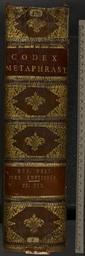 Keywords: Symeon Metaphrastes, Saints' Lives for 14-31 December - Spine (Add Ms 22733).jpg Style Armorial; Caption Spine; Colour Brown; Edge Unspecified exhibition history Decorative Technique Tooled in gold; Cover Material Calf Belonged to Cardinal Salviati d 1553 whose name appears on f 3 and to Pope Pius VI 1775-1799 whose arms are stamped on the covers Complete digital coverage available for this manuscript; see Digitised Manuscripts object history Text 11c; Unspecified; Pius VI Pope 1717-1799 object type Cc-zero place of creation Binding Italy place of discovery Unspecified British Library image http //www bl uk/catalogues/bookbindings/LargeImage aspx RecordId 020-000019127 ImageId ImageId 57516 Copyright BL Symeon Metaphrastes Saints' Lives for 14-31 December Uploaded with GWToolset Symeon Metaphrastes Saints' Lives for 14-31 December - Spine Add Ms 22733 http //www webarchive org uk/bldatasets/bindings/add_ms_22733_fbspi jpg Bookbinding 18th-century bookbinding British Library Bookbindings |