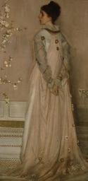 | Keywords: Symphony in flesh color and pink by JM Whistler, 1871-74.jpg Artwork 1871 - 1874 oil on canvas cm 195 9 102 24 Institution The Frick Collection New York New York USA accession number object history credit line Commentary Frances Dawson 1834 “1910 married in 1855 Frederick R Leyland a major Liverpool shipowner telephone magnate and art collector who was one of Whistler ™s chief patrons before the two quarreled bitterly over the decoration of the famous Peacock Room once the dining room of the Leylands ™ London townhouse and now in the Freer Gallery of Art in Washington Commissioned in the fall of 1871 this portrait was exhibited at Whistler ™s first one-man exhibition in 1874 an event sponsored by Leyland but was never considered by the artist to be totally finished Within its predominantly pink color scheme intended to set off Mrs Leyland ™s red hair the subject is depicted wearing a multi-layered gown designed by the artist The abstract basketweave patterns of the matting at the base are repeated on the frame also designed by the artist; they offset the naturalistic flowering almond branches at the left which suggest Whistler ™s deep interest in Japanese art at this time Like the portrait of Montesquiou that of Mrs Leyland is signed at mid-right with Whistler ™s emblematic butterfly a pattern based on his initials JMW and imbued with the formalistic preoccupations of the nineteenth-century aesthetic movement The portrait is in fact so totally a work of exquisite design that Whistler ™s contemporary Dante Gabriel Rossetti wrote of it with some reason I cannot see that it is at all a likeness Source Art in The Frick Collection Paintings Sculpture Decorative Arts New York Harry N Abrams 1996 http //collections frick org/Obj1020 18936 PD-old-100 Portrait paintings by James McNeill Whistler 1870s fashion Standing women in art 1870s portrait paintings |