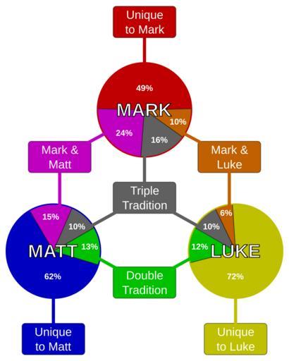 | Keywords: Synoptic Overlap by Words en.svg en Diagram of overlap in wording between the three Synoptic Gospels Matthew Mark and Luke by word count according to the figures given in HonorĂ© A M 1968 A statistical study of the synoptic problem Nov Test 10 95 “147 2014-01-01 21 51 04 own SlothMcCarty Relationship_between_synoptic_gospels-en svg based upon pericope counts cc-zero Uploaded with UploadWizard Synoptic Gospels | ||||