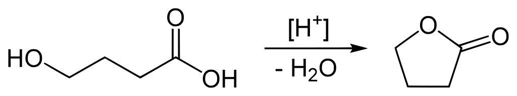 Keywords: Synthesis gamma-Butyrolactone.svg en Synthesis of gamma-Butyrolactone form gamma-hydroxybutyric acid de Synthese von Butyro-1 4-lacton aus 4-Hydroxybutansäure Own Yikrazuul Nikolaustag Gamma-butyrolactone GHB