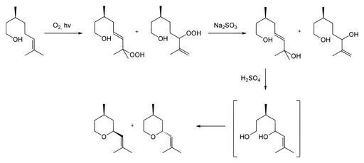 Keywords: Synthesis rosenoxide.svg en Synthesis of rosenoxide de Synthese von - -cis bzw - -trans-Rosenoxid Own Yikrazuul 5 1 09 Organic syntheses Rose oxide