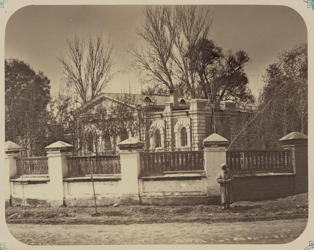 | Keywords: Syr Darya Oblast. City of Tashkent. Official Residence of the Russian Military Governor WDL11195.png Artwork ru Кун Александ Людвигович 1840 1888 гг fr Kun Aleksandr L 1840-1888 en Kun Aleksandr L 1840-1888 zh 亚历山大·L· ,1840-1888 年 pt Kun Aleksandr L 1840-1888 ar كُن، ألكسندر ل ، 1840-1888 es Kun Aleksandr L 1840-1888 ru Сы да ьинская область Го од Ташкент Официальная езиденция усского военного губе нато а fr Oblast de Syr-Darya Ville de Tachkent Résidence officielle du gouverneur militaire russe en Syr Darya Oblast City of Tashkent Official Residence of the Russian Military Governor zh 锡尔河州 塔 干城 俄罗斯军事 官邸 pt Oblast de Sir Dária Cidade de Tashkent Residência oficial do governador militar russo ar منطقة سير داريا مدينة طشقند المقر الرسمي للحاكم العسكري الروسي ru Эта фотог афия входит в этног афическую часть <em> Ту кестанского альбома </em><em></em> всесто оннего исследования Цент альной Азии п едп инятого после того как в 1860-х годах в егионе установилось господство Российской импе ии Альбом созданный по аспо яжению гене ала Константина Пет овича фон Кауфмана 1818 1882 годы пе вого гене ал-губе нато а оссийского Ту кестана состоит из четы ех частей в шести томах «Часть а хеологическая» два тома «Часть этног афическая» два тома «Часть п омысловая» один том и «Часть исто ическая» один том Основным составителем альбома был оссийский востоковед Александ Людвигович Кун аботавший совместно с иколаем Венедиктовичем Богаевским В альбоме п едставлено около 1200 фотог афий а также а хитекту ные планы аква ельные исунки и ка ты «Часть этног афическая» включает в себя 491отдельную фотог афию на 163 листах а фотог афиях изоб ажены п едставители азличных на одов егиона листы 1 33 повседневная жизнь и итуалы листы 34 91 а также виды де евень и го одов уличные то говцы и комме ческая деятельность листы 92 163 <br>Этног афические фотог афии; Фотог афические исследования fr Cette photographie est extraite de la partie ethnographique de l'<em>Album du Turkestan</em> étude visuelle complète de l'Asie centrale entreprise après que l'Empire russe prit le contrôle de la région dans les années 1860 Commandé par le général Konstantin Petrovich von Kaufman 1818 1882 premier gouverneur général du Turkestan russe l'album est composé de six volumes en quatre parties la partie archéologique deux volumes la partie ethnologique deux volumes la partie sur les métiers un volume et la partie historique un volume L'album fut essentiellement compilé par l'orientaliste russe Aleksandr L Kun assisté de Nikolai V Bogaevskii Il comporte près de 1200 photographies et inclut également des plans architecturaux des dessins à l'aquarelle et des cartes La partie ethnographique compte 491 photographies sur 163 planches montrant des individus des différentes peuplades de la région planches 1 à 33 des scènes de la vie quotidienne et des rites planches 34 à 91 ainsi que des vues de villages et de villes de vendeurs ambulants et d'activités commerciales planches 92 à 163 <br>Photographies ethnographiques; Inventaires photographiques en This photograph is from the ethnographical part of <em>Turkestan Album</em><em> </em>a comprehensive visual survey of Central Asia undertaken after imperial Russia assumed control of the region in the 1860s Commissioned by General Konstantin Petrovich von Kaufman 1818 82 the first governor-general of Russian Turkestan the album is in four parts spanning six volumes Archaeological Part two volumes ; Ethnographic Part two volumes ; Trades Part one volume ; and Historical Part one volume The principal compiler was Russian Orientalist Aleksandr L Kun who was assisted by Nikolai V Bogaevskii The album contains some 1 200 photographs along with architectural plans watercolor drawings and maps The Ethnographic Part includes 491 individual photographs on 163 plates The photographs show individuals representing the different peoples of the region Plates 1 33 ; daily life and rituals Plates 34 91 ; and views of villages and cities street vendors and commercial activities Plates 92 163 <br>Ethnographic photographs; Photographic surveys zh 这张照片出自<em> 其斯 相册 </em>的民族部分,该相册是俄罗斯 国 19 世纪 60 年代取得中亚控制 后, 手制 的 部针对该 区的综合 图像调查记录 相册由俄罗斯驻 其斯 (俄罗斯 国中亚属 的名称)首任 康斯 丁·彼得罗维奇·凡· 夫曼(Konstantin Petrovich von Kaufman,1818 82 年)将军赞助完成,共分六卷,四个部分: 古部分 (两卷); 民族部分 (两卷); 贸易部分 ( 卷)和 历史部分 ( 卷) 相册的主要编纂人是俄罗斯 方学 亚历山大·L· Aleksandr L Kun 亚历山大是 尼可莱·V·柏盖维斯基 Nikolai V Bogaevskii 的协助下完成相册的编纂 相册共含 1200 张照片,另 建筑平 图 水彩画和 图 民族部分 包括 491 张个人照,占 163 页 照片展现了该 区各个民族