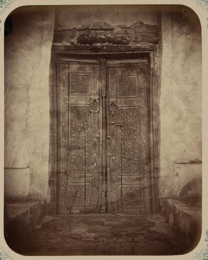 | Keywords: Syr-Darya Oblast. City of Turkestan. External Door Leading to the Mausoleum of Saint Sultan Akhmed Iassavi WDL3599.png  Artwork ru Богаевский  иколай Владими ович 1843 1912 гг fr Bogaevskii Nikolaï V 1843-1912 en Bogaevskii Nikolai V 1843-1912 zh 亚历山大·L· ,1840-1888 年 pt Bogaevskii Nikolai V 1843-1912 ar بوغافسكي، نيكولاي ف ، 1843-1912 es Bogaevskii Nikolai V 1843-1912 ru Сы да ьинская область Го од Ту кестан  а ужная две ь ведущая в мавзолей святого султана Ахмеда Ясави fr Oblast de Syr-Darya Ville de Turkestan Porte extérieure menant vers le mausolée du vénérable sultan Akhmed Iassavi en Syr-Darya Oblast City of Turkestan External Door Leading to the Mausoleum of Saint Sultan Akhmed Iassavi zh 锡尔河 区   其斯 市  向 苏尔 ·艾哈迈德·亚萨维陵墓的外门 pt Oblast de Sir Dária Cidade do Turquestão Porta externa que leva ao mausoléu do santo sultão Ahmed Iassavi ar منطقة سير داريا مدينة تُرْكِستان باب خارجي يؤدِّي إلى ضريح الولي سلطان أحمد يسوي ru Эта фотог афия мавзолея Ходжи Ахмеда Ясави в Яси сов еменный Ту кестан Казахстан соде жится в а хеологической части <em> Ту кестанского альбома </em> Шеститомное фотог афическое исследование было подготовлено и издано в 1871 1872 гг под пат онажем гене ала Константина П  фон Кауфмана пе вого гене ал-губе нато а 1867 1882 гг Ту кестана как называли в то в емя те  ито ию Цент альной Азии п инадлежавшую Российской импе ии Яси ассоции уется с суфийским мистиком Ходжой Ахмедом Ясави 1103 1066 гг великая слава кото ого побудила Тиму а Таме лана пост оить мемо иальную г обницу <em>ханаку</em> на месте его захо онения  авзолею пост оенному в 1396 1398 гг п исущи ха акте ные че ты тиму идской а хитекту ы в то в емя пе еживавшей свой  асцвет в Сама канде  а снимке видна на ужная две ь  асположенная в нише по тала ог омной а ки <em>айвана</em> сводчатого зала с одним отк ытым концом ок уженного с т ех сто он стенами  есмот я на пов еждения на двух ство ках две и хо ошо сох анились де евянные панели с  оскошной  езьбой Цент альные панели больше д угих и имеют самое изысканное офо мление состоящее из пе еплетающихся цветочных а абесок и изоб ажений лотосов  ижние панели имеют ок углую фо му Они соде жат сложный узо из восьмиконечных звезд  асходящихся из цент а В ве хних панелях соде жатся геомет ические мотивы с  укописным а абским письмом Панели окаймлены полосками из сложных пе есекающихся геомет ических фигу По азительное масте ство офо мления две и наводит на мысли о  айских в атах <br>Две и и две ные п оемы; Исламская а хитекту а; Ясави Ахмед уме в 1166 г ; Фотог афические исследования;  огильные памятники; Г обницы fr Cette photographie du mausolée de Khodzha Akhmed Iassavi à Yasi au Turkestan actuel Kazakhstan est extraite de l'ouvrage archéologique <em>Album du Turkestan</em> Cet inventaire photographique en six volumes fut réalisé entre 1871 et 1872 sous le patronage du général Konstantin P von Kaufman premier gouverneur général 1867-1882 du Turkestan nom donné aux territoires d'Asie centrale de l'Empire russe La ville de Yasi est associée au mystique soufi Khodzha Akhmed Iassavi 1103-1166 dont la renommée était telle que Tamerlan fit construire un sanctuaire commémoratif <em>khanaka</em> sur le site de sa tombe Bâti de 1396 à 1398 le mausolée présente les caractéristiques de l'architecture timuride en pleine apogée à Samarcande à cette époque Cette vue présente la porte extérieure du mausolée à l'intérieur de la niche du portail du grand arceau de l'<em>aivan</em> salle voûtée dotée de trois murs et d'un côté ouvert Malgré les dommages visibles les panneaux de lambris en bois des deux battants de la porte sont encore décorés de sculptures luxuriantes bien conservées Au centre les panneaux les plus grands arborent les ornements les plus sophistiqués composés d'arabesques à fleurs entrelacées de figures de lotus Les panneaux inférieurs présentent des décorations circulaires avec des motifs complexes d'étoiles à huit branches qui s'étendent depuis le centre Les panneaux supérieurs contiennent des motifs géométriques avec une écriture cursive arabe Les panneaux sont encadrés de bandes de figures géométriques complexes qui s'entrecroisent La qualité artistique remarquable de la porte suggère l'entrée du paradis <br>Portes et seuils; Architecture islamique; I͡Asavi Akhmed mort en 1166; Inventaires photographiques; Monuments funéraires; Tombes en This photograph of the mausoleum of Khodzha Akhmed Iassavi in Yas