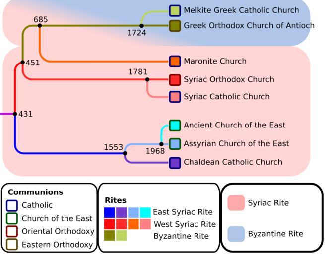 MAKE A MEME View Large Image Syriac Christian Churches.svg en Divisions between main Syriac Christian groups 2011-10-16 own Rafy Translation possible Inkscape Syriac Christianity Timelines of branches of Christianity