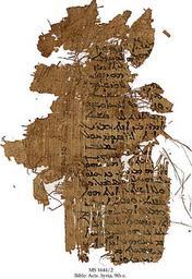 Keywords: Syriac papyri.jpg en Papyrus fragment of the 9th century written in Serto variant A passage from the Acts of the Apostles is recognizable century 9 http //lila sns it/mnamon/index php page Immagini id 26 cont 231 lang en PHPSESSID fd295a39b79bd227a38863f268f62969 anonymous PD-old-100 Uploaded with UploadWizard Syriac script Papyri Serto Acts of the Apostles Schoyen Collection Peshitta