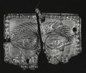 Keywords: Syrian - Votive Plaque with Eyes - Walters 571865563.jpg This thin silver piece shows a pair of almond-shaped eyes above an inscription that translates In fulfillment of a vow The words identify the plaquette as a votive or offering left by pilgrims at a shrine in order to ask for divine assistance or to give thanks for a miraculous cure with reference to the healed body part The practice of leaving votives at shrines continues to this day century 6 7 Late Antique silver alloy cm 2 86 3 81 accession number 57 1865 563 36145 Found near Ma'aret en-Noman Syria prior to 1945 M Henri Seyrig Beirut date of acquisition unknown by purchase Walters Art Museum Gift of M Henri Seyrig 1956 Translation In fulfillment of a vow Sacred Souvenirs Byzantine Pilgrimage Art Dumbarton Oaks Washington 1982 Silver Treasure from Early Byzantium The Walters Art Gallery Baltimore 1986 Treasures of Heaven The Cleveland Museum of Art Cleveland; The Walters Art Museum Baltimore; The British Museum London 2010-2011 place of origin Syria Walters Art Museum license Byzantine silver in the Walters Art Museum Medieval metalwork in the Walters Art Museum Reliefs from Syria Media contributed by the Walters Art Museum needs category review |