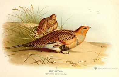 | Keywords: Syrrhaptes paradoxus Thorburn.jpg la Syrrhaptes paradoxus ru Саджи ензби А Охотничьи и п омысловыя птицы Ев опейской России и Кавказа 2 тома и атлас типо-литог афия Т-ва И Кушне ев и Ко 1900-1902 1902 Menzbir M A Okhotnichi i promyslovyia ptitsy evropeskoi Rossii i Kavkaza Volume t 3 http //www archive org/stream/okhotnichiipromy03menz page/n371/mode/2up Creator Archibald Thorburn PD-old-auto 1935 Uploaded with UploadWizard Syrrhaptes paradoxus Archibald Thorburn | ||||