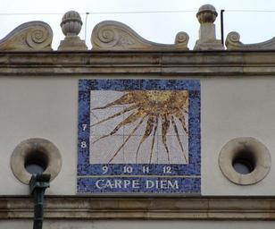 Keywords: Szczecin Zamek Ksiazat Pomorskich zegar sloneczny I.jpg pl Zegar słoneczny - Zamek Książąt Pomorskich w Szczecinie own Kapitel 2009 Szczecin Castle Sundials in Szczecin Vertical sundials Carpe diem as sundial motto Latin sundial mottos Clocks in Szczecin |
