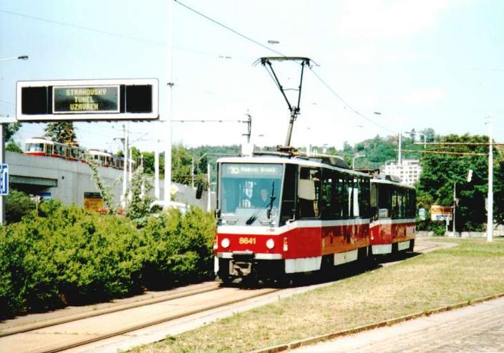 Keywords: T6A5 v Praze - 25.jpg Tramvaj typu Tatra T6A5 v Praze http //www mujweb cz/www/mhd_jama/galery/2mesta/praha25 jpg between 1998 2009 Vít Javůrek PermissionOTRS 2009021510024408 Vít Javůrek Tram 8641 Prague Tram loop Nádraží Braník Flip-dot road traffic information displays in Prague