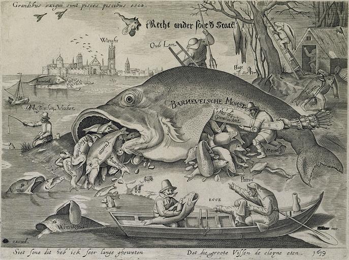 Keywords: T Recht ondersoec der Staten 001.jpg Northern Netherlands Pieter van der Heyden Pieter Bruegel I LangSwitch Hieronymus Jheronimus Bosch Satirische Bearbeitung der als Kupferstich verbreiteten Zeichnung Die großen Fische fressen die kleinen 1556 1619 engraving paper cm 24 8 31 8 Institution Rijksmuseum Amsterdam Rijksprentenkabinet RP-P-OB-77 302 object history ProvenanceEvent 1881 purchase LangSwitch das the le het Rijksmuseum Amsterdam Amsterdam exhibition history credit line Grandibus exigui sunt pisces piscibus esca title top left la tRecht ondersoec der Staten title top center odt <s>Hh</s> excud signature bottom left la <s>H Bos</s> inv entor bottom right la signature Siet sone dit heb' ick seer lange gheweten - Dat die groote Vissen de cleyne eten 1619 caption / date bottom odt accession number RP-P-OB-77 302 www rijksmuseum nl http //www rijksmuseum nl Home http //www rijksmuseum nl/collectie/RP-P-OB-77 302/de-grote-vissen-eten-de-kleine-vissen-spotprent Info http //www rijksmuseum nl/assetimage2 jsp id RP-P-OB-77 302 Pic Pieter van der Heyden 010 jpg Version without additions Big Fish Eat Little Fish 1557 jpg Original by Pieter van der Heyden Pieter Bruegel the Elder - Big Fish Eat Little Fish 1556 - Google Art Project jpg Original by Pieter Bruegel I PD-old-100 Johan van Oldenbarnevelt 1610s engravings Hendrik Hondius I Pieter van der Heyden Big Fish Eat Little Fish 1556 after Pieter Bruegel the Elder Dutch 17th-century prints in the Rijksmuseum Amsterdam Anonymous Derivative works of famous art Eighty Years' War 1619 People with fish in art Satirical art works |