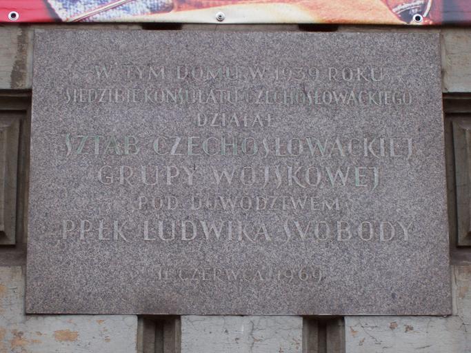| Keywords: Tablica ku czci Ludwika Svobody.jpg pl Tablica pamiątkowa na budynku dawnego konsulatu Czechosłowacji w Krakowie own Miezian 2007 Czechoslovakia in World War II World War II Ludvík Svoboda Plaques in Kraków Former Czechoslovak consulate in Kraków |