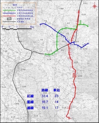 | Keywords: Taichung MRT Lines Planned in 1998.png zh 1997年,臺灣 政 完成 臺中都 捷運路網細部規劃 ,規劃 紅 藍 綠三 路線 臺中都 大 捷運系統後續路網檢討公聽 簡報 臺北市政 捷運工程 2009-05-19 PD-ROC-exempt Department of Rapid Transit Systems Taipei City Government Taiwan Provincial Government Taichung MRT |