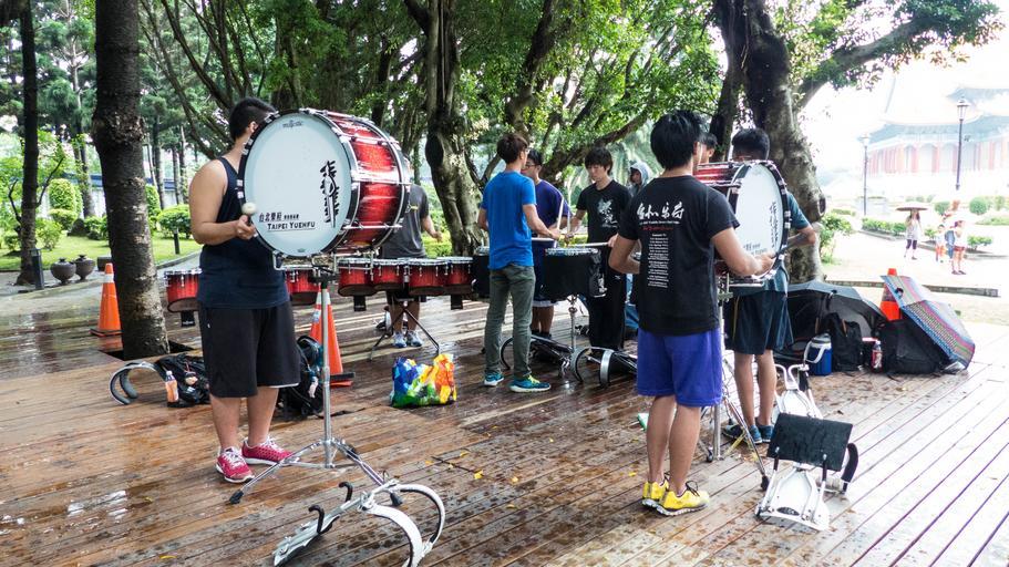 Keywords: Taipei Yuehfu Drum and Bugle Corps Practicing in Rainy Day 20140607.jpg zh-tw 大雨中,臺北樂 樂旗 術 成員 家戲劇院附近樹蔭下練習 Own 玄史生 2014-06-07 Musical groups from Taiwan People with drums June 2014 in Taiwan 玄史生写 文庫 Taken with Leica V-Lux 4 Cc-zero
