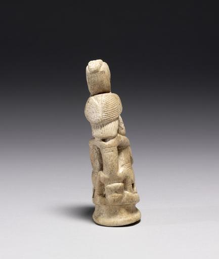 | Keywords: Tairona - Bone Carving of a Shaman-Vulture - Walters 2006151 - Back.jpg The carved bone finial likely once graced the head of a ritual staff-like implement of a shaman Finials are a fairly rare class of object among northern South American material culture with gold examples attested among the Sinú and bone ones such as this example among the Tairona Although their exact use and meaning remain unclear the presentation on this example of a grimacing humanoid figure surrounded by three symbolically charged creatures seems to represent a shaman in a drug-induced trance Throughout Middle America vultures are commonly affiliated with the celestial realm; jaguars with the terrestrial realm; and serpents with the watery underworld In this example one creature from each level of the Tairona cosmic conceptualization is positioned in relation to the central shaman- the vulture is perched above his head the serpent between his legs and in lieu of the common jaguar an apparently lizard-like creature is held upside down on the shaman's back The shaman's slightly simian nose and exaggerated grimace mark his altered trace-state; in effect he has achieved a hyper-real 'super'-natural state and thus is prepared to communicate directly with the otherworldly spirit representatives of the earth sky and underworld between 500 1000 bone cm 10 8 accession number 2006 15 1 25655 Austen-Stokes Ancient Americas Foundation John Stokes as agent March 14 2006 by purchase Arte Primitivo New York as agent Walters Art Museum Gift of the Austen-Stokes Ancient Americas Foundation 2007 place of origin northeast Colombia Walters Art Museum license Pre-Columbian art in the Walters Art Museum Tayrona art Media contributed by the Walters Art Museum needs category review Pre-Columbian bone artefacts |