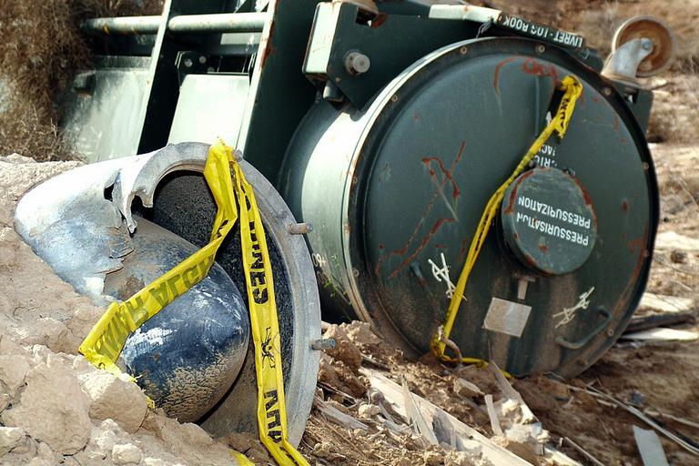 | Keywords: Taji Ammunition Dump DVIDS13757.jpg en Half-buried munitions found in the Taji Ammunition Dump known as Area Echo 15 miles north of Baghdad 3rd Brigade 1st Armored Division was tasked with management of the Area Echo and diligently worked with contractors and explosive ordnance disposal teams to clear the compound of all munitions Nearly twenty-thousand tons of munitions were destroyed in Area Echo and the removal these munitions was a significant task that added to the safety of Coalition Forces and the Iraqi people Explosive ordnance disposal technicians detonated the last seven one thousand pound bombs in Taji Dec 16 Photo by Staff Sgt Kevin Bromley C Team 100th MPAD 3rd Bde 1AD PAO 2005-03-22 https //www dvidshub net/image/13757 13757 2005-12-21 08 47 TAJI IQ PD-USGov 1st Armored Division United States Images from DoD uploaded by Fæ |