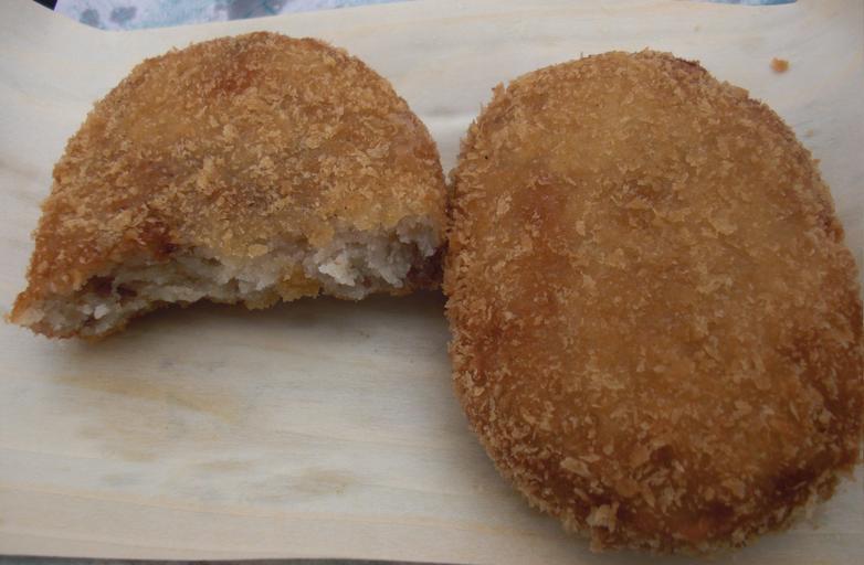 Keywords: Takaoka Korokke made by Tengu no Niku.jpg en This is Takaoka korokkes that was made by Tengu no Niku Ohtemachi shop in Takaoka Toyama Japan ja 富山 高岡市にある 天狗乃肉大手町店の った高岡コロッケ own Miyuki Meinaka 2010-10-30 Public doamin Korokke Takaoka Toyama Cuisine of Toyama prefecture Cross sections of food |