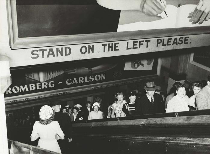 | Keywords: archives state records nsw staterecordsnsw newsouthwales blackandwhite wynyard railway station railwaystation commuters people escalators city circle citycircle sydney women keep to the left keeptotheleft geotagged geo:lon=-33.865868 geo:lon=33865868 geo:lat=151.205547 geo:lat=151205547 srnsw:series=17420 commonsbest black and white Rail commuters on the escalators at Wynyard Railway Station Dated: 25 February 1948 Digital ID: 17420_a014_a014000660 Rights: No known copyright www.records.nsw.gov.au/about-us/rights-and-permissions We'd love to hear from you if you use our photos. Many other photos in our collection are available to view and browse on our website using Photo Investigator. Rail commuters on the escalators at Wynyard Railway Station Dated: 25 February 1948 Digital ID: 17420_a014_a014000660 Rights: No known copyright www.records.nsw.gov.au/about-us/rights-and-permissions We'd love to hear from you if you use our photos. Many other photos in our collection are available to view and browse on our website using Photo Investigator. |
