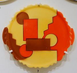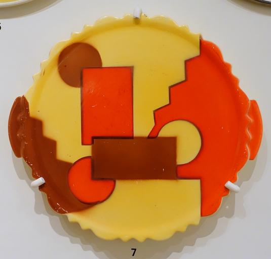 | Keywords: Tambourine-shaped cake plate, Model 1501, Steingutfabrik Theodor Paetsch, Frankfurt a.d. Oder, 1930-1933, creamware with airbrushed colors - Museum für Angewandte Kunst Köln - Cologne, Germany - DSC09532.jpg Geschmacksmuster This protection period has passed and hence this work is now in the public domain 2015-11-28 10 43 27 own Daderot other versions cc-zero Collections of the Museum für Angewandte Kunst Köln Steingutfabrik Paetsch | ||||