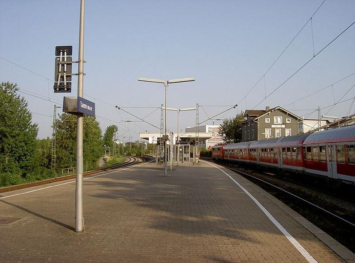 Keywords: 48 55N 9 08E Tamm station is a station on the network of the Stuttgart S-Bahn in Tamm in the German state of Baden-Württemberg. Opened 10 December 1877. Attribution: Baron2105