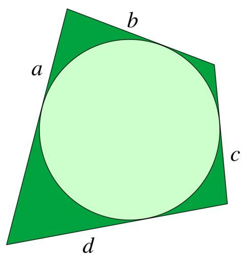 Keywords: Tangential quadrilateral.svg A en Tangential quadrilateral Redrawn after a bitmap image at en Image Tangentialquad JPG Own 2008-04-09 David Eppstein Files by User David Eppstein from en wikipedia Tangential quadrilaterals