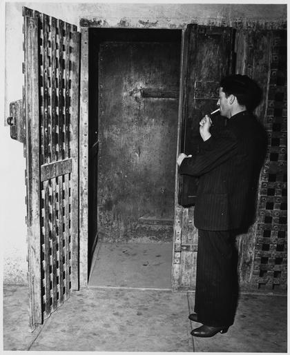 | Keywords: Taos County, New Mexico. Sheriff Montoya displays, with some pride, the tiny cell in which are lock . . . - NARA - 521886.tif Scope and content Full caption reads as follows Taos County New Mexico Sheriff Montoya displays with some pride the tiny cell in which are locked drunks who won't behave or special important tough prisoners with whom he wishes to take no chances The box in which his hand holds the inserted key is an enormous lock which holds the bolt of the cell door Cell is the size of a large closet General notes 521886 Local identifier 83-G-41659 Department of Agriculture Bureau of Agricultural Economics Division of Economic Information ca 1922 - ca 1953 NARA-Author Rusinow Irving Photographer 5307166 <br /> Still Picture Records Section Special Media Archives Services Division NWCS-S National Archives at College Park 8601 Adelphi Road College Park MD 20740-6001 12/1941 Record group Record Group 83 Records of the Bureau of Agricultural Economics 1876 - 1959 Record group ARC 412 Photographic Prints Documenting Programs and Activities of the Bureau of Agricultural Economics and Predecessor Agencies compiled ca 1922 - ca 1947 documenting the period ca 1911 - ca 1947 Series ARC 521048 File unit File unit ARC Variant control numbers NAIL Control Number NWDNS-83-G-41659 yes Other versions <gallery> File Taos_County _New_Mexico _Sheriff_Montoya_displays _with_some_pride _the_tiny_cell_in_which_are_lock_ _ _ _-_NARA_-_521886 tif tif File Taos_County _New_Mexico _Sheriff_Montoya_displays _with_some_pride _the_tiny_cell_in_which_are_lock_ _ _ _-_NARA_-_521886 jpg jpg </gallery> NARA-cooperation PD-USGov Irving Rusinow 1941 in Taos County NARA TIF images with categorized JPGs |
