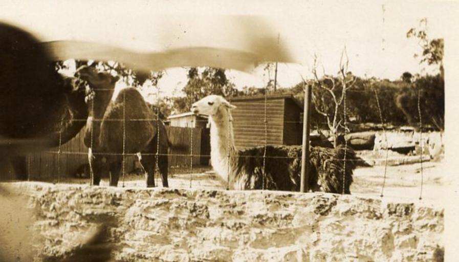 Keywords: “taronga park zoo” rahs “royal australian historical society” sydney australia nsw nature zoo animals monochrome A llama with camels in their enclosure [RAHS] A llama with camels in their enclosure [RAHS]