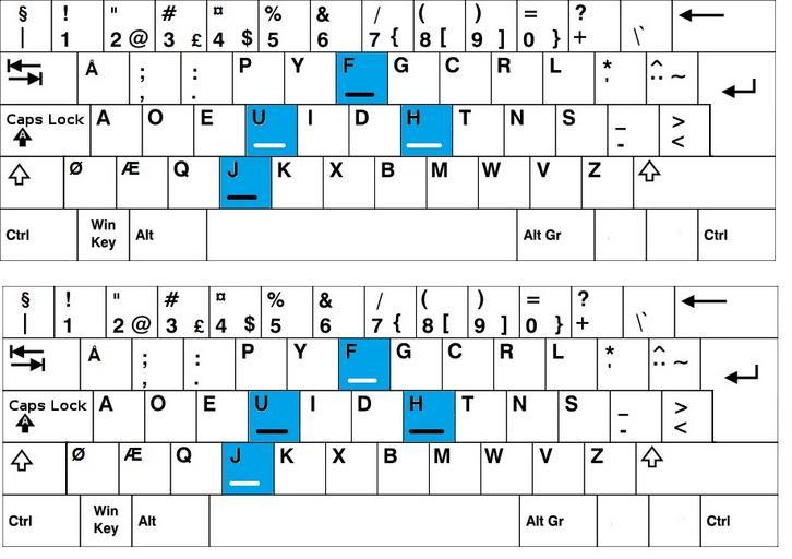 Keywords: Tastatur med fingermerker, dvorak og qwerty.jpg nb Viser manglende fingermerker og feil fingermerker når man gjør om et tastatur fra qwerty til dvorak øverste tastaturet og hvordan fingermerker på et originalt dvorak-tastatur skal se ut nederste tastaturet 2007-07-24 04 06 09 own Oddiss1985 cc-zero Uploaded with UploadWizard Dvorak keyboard layouts |