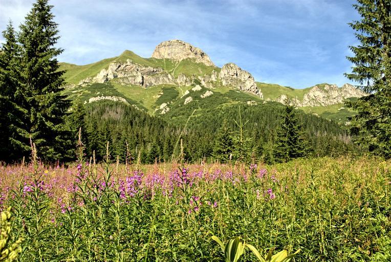 Keywords: tatry slovakia landscape top view mountains view nature mountain sky tourists valley koperszadów