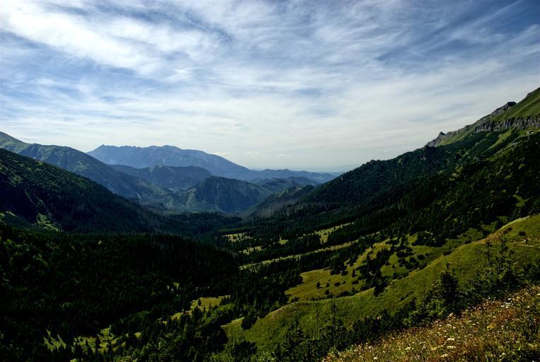 Keywords: tatry slovakia landscape top view mountains view nature mountain sky tourists valley koperszadów