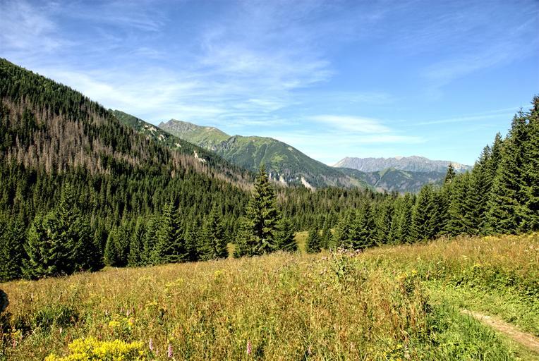 Keywords: tatry slovakia landscape top view mountains view nature mountain sky tourists valley koperszadów
