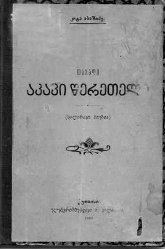 | Keywords: Tavadi Akaki Tsereteli, Kita Abashidze 1908.jpg en Tavadi Akaki Tsereteli Kita Abashidze 1908 http //publish dlf ge/vaxtangvi/abashizekita/photogallery/wigni 20pirveli 20gamocema jpg publish dlf ge Kita Abashidze 1908 Kita Abashidze 1908 books Mkhedruli book covers 1908 in Georgia Akaki Tsereteli Source http //publish dlf ge/vaxtangvi/abashizekita/photo_gallery htm publish dlf ge PD-Art | ||||