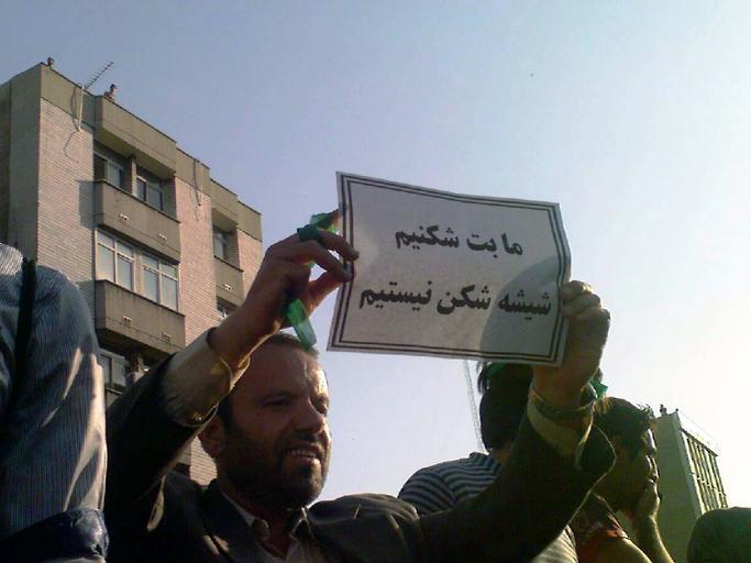 Keywords: Tazahorat sabz (14).JPG Protest demonstration against election results 7th Tir thru Karimkhan to Vali Asr Sq and beyond Tehran Sign reads We dont break windows We break idols First sentence refers to beiong labeled as rioters by the govt Second sentence refers to Muhammad prophet of Islam who was nicknamed the idol breaker for breaking all pagan idols inside the Kaaba in Mecca myself on behalf of photographer Saba The photographer nicknamed Saba wishes to remain anonymous I have permission from photoghrapher to upload to WikiCommons under PD license Contact me for verification Protests relating to the Iranian presidential election 2009 from 7th Tir to Vali Asr Tehran |