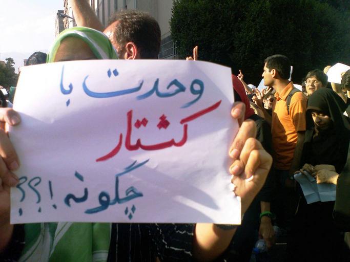 Keywords: Tazahorat sabz (3).JPG en Protest demonstration 7th Tir thru Karimkhan to Vali Asr Sq and beyond Tehran Sign reads unity with killings how is that possible myself on behalf of photographer saba The photographer nicknamed Saba wishes to remain anonymous I have permission from photoghrapher to upload to WikiCommons under PD license Contact me for verification Protests relating to the Iranian presidential election 2009 from 7th Tir to Vali Asr Tehran
