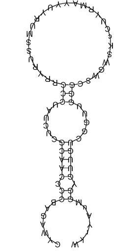 | Keywords: TB10Cs2H1 snoRNA.PNG en RNA secondary structure of TB10Cs2H1 generated by the WAR server http //genome ku dk/resources/war/pages/about php It is the consensus structure from 8 Trypansomatid species -Leishmania major Leishmania infantum Leishmania braziliensis Trypanosoma brucei Trypanosoma brucei gambiense Trypanosoma cruzi Trypanosoma congolense Trypansoma vivax --with some manual editing and redrawing of the structure with RNAplot from the Vienna RNA package own Ttd61300 Non-coding RNA Trypanosoma |