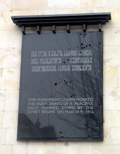 | Keywords: Tbilisirallymemorial.jpg Plaque in memory of those shot at rally in Tbilisi in 1956 in Rustavelis Gamziri I Smerus took this photo Georgian text 1956 წლის 9 მარტს საბჭ თა რეჟიმის მიერ დახვრუტილი მშვიდ ბია ი მ მიტი გეების ხს ვ ის მემ რიალი English text This monument commemorates the participants of a peaceful rally gunned down by the Soviet regime on March 9 1956 Smerus en wikipedia Geagea CommonsHelper 2006-03-09 Smerus wikipedia en Smerus original upload log page en wikipedia Tbilisirallymemorial jpg 2006-03-09 12 12 Smerus 400×514× 101653 bytes <nowiki>Plaque in memory of those shot at rally in Tbilisi in 1956 in Rustavelis Gamziri I took this photo </nowiki> History of Tbilisi 1956 in Tbilisi Mkhedruli plaques |