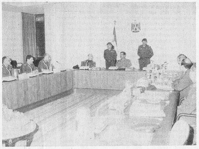 | Keywords: TBO 17061988 RCC.jpg en Joint meeting of the Revolution Command Council RCC and the Regional Command of the Arab Socialist Ba'th Party in Baghdad Iraq on June 16th of 1988 presided by Iraqi President Saddam Hussein / on his right side is RCC deputy chairman Izzat Ibrahim ad-Duri The Baghdad Observer 17th of June 1988 front page Iraqi News Agency 1988-06-16 PD-Iraq The source of this image was the Iraqi News Agency an organ of the defunct old regime 1988 in Baghdad Ba'athism Saddam Hussein Izzat Ibrahim ad-Duri |