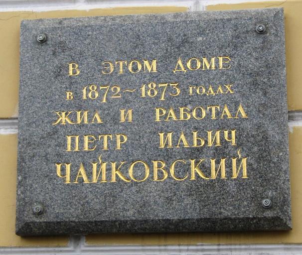 Keywords: Tchaykovsky Moscow.jpg en In this house in 1872-1873 lived and worked Peter Tchaikovsky Moscow Novinsky blvd 46 ru В этом доме в 1872-1873 жил и аботал Пет Ильич Чайковский осква овинский б- 46 own Vladimir OKC 2010-11-05 Novinsky Boulevard Memorial wall signs in Moscow Plaques in Moscow Pyotr Ilyich Tchaikovsky Plaques to composers |