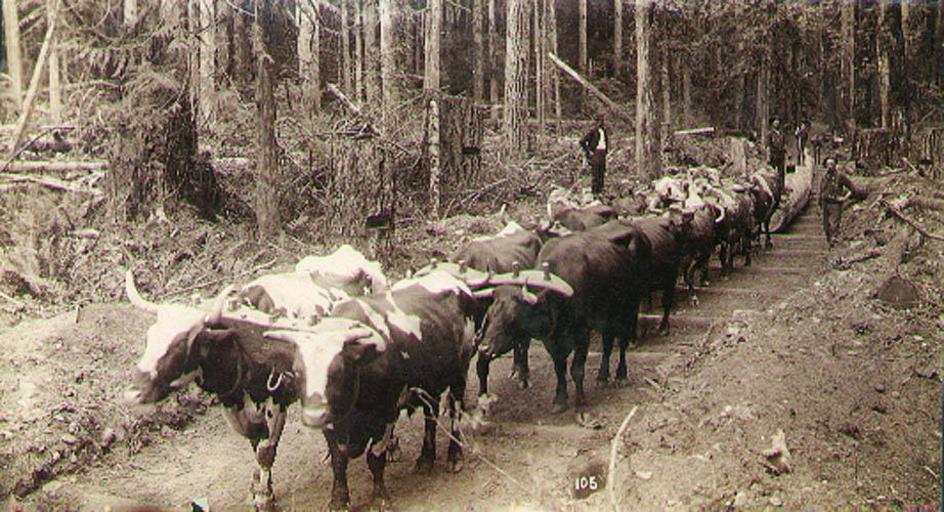 | Keywords: Team of oxen hauling logs over skidroad, probably Washington State, ca 1892 (LAROCHE 167).jpeg Photograph Creator Frank La Roche Subjects LCTGM Cattle; Lumber industry; Skid roads depicted place United States ca 1892 Institution University of Washington UWASH-LAROCHE-source accession number laroche 167 PD-old-auto-1923 1936 Information field Order Number LAR030 Images from the Frank La Roche Photographs Collection to check Transport of timber in the United States Ox transport 1892 in the United States |