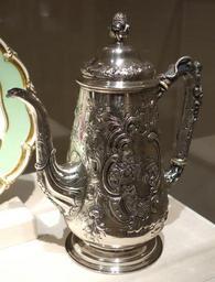 | Keywords: Teapot, by Obediah Rich, Boston, Massachusetts, 1840-1850, silver - Winterthur Museum - DSC01424.JPG en Exhibit in the Winterthur Museum New Castle County Delaware USA Photography was permitted in the museum without restriction This work is in the public domain because the artist died more than 70 years ago 2013-05-08 12 09 02 own Daderot cc-zero Metalwork in Winterthur Museum Uploaded with UploadWizard | ||||
