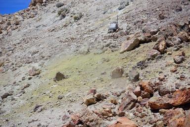 Keywords: teide crater sulfur sulfur vapor measuring station lava active pico del teide summit volcanic crater volcano lava field volcanic teyde teide national park tenerife canary islands