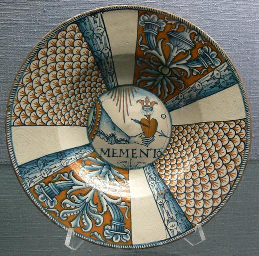 MAKE A MEME View Large Image Teller Memento KGM K1757.jpg Teller tondino radial geteilt in der Mitte ein Arm mit einem von Amors Liebespfeil durchbohrten Herzen; Anfang 16 Jh <br />Kunstgewerbemuseum Berlin Inv Nr K 1757 own 2009 User FA2010 Ceramics in ...