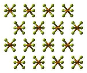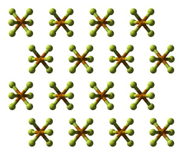 Keywords: Tellurium-hexafluoride-xtal-1992-3D-balls.png Ball-and-stick model of part of the crystal structure of tellurium hexafluoride TeF<sub>6</sub> X-ray crystallographic data from http //dx doi org/10 1080/00268979200100501 Mol Phys 1992 75 689-698 Model constructed in http //www crystalmaker com/ CrystalMaker 8 1 Image generated in http //accelrys com/products/discovery-studio/visualization/discovery-studio-visualizer html Accelrys DS Visualizer Own 2009-05-26 Ben Mills Benjah-bmm27 Images by Ben Mills Tellurium hexafluoride Crystal structures of fluorides |