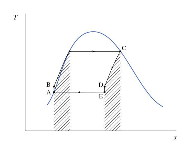View Original:Temperature-entropy chart of a regenerative Rankine cycle.svg (1396x1126)
