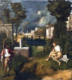 Keywords: Tempes12.jpg Artwork creator Giorgione title Das Gewitter The Tempest La Tempête Tempesta ca 1507 1508 Oil on canvas cm 82 73 Gallerie dell'Accademia Venice Internet Other versions PD-old-100 The Tempest by Giorgione 02