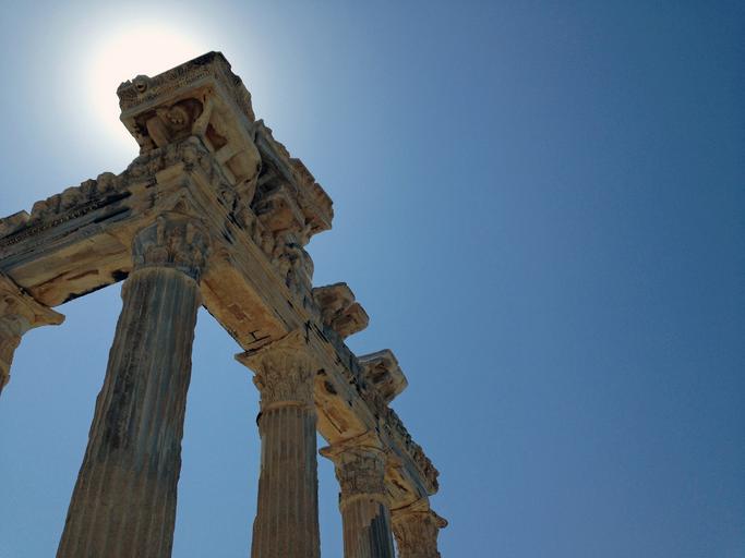 Keywords: temple romans columns column apollo temple air blue sunlight