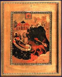 Keywords: Temptation of St. Anthony (Moscow, 16 c.).jpg Искушение святого Антония Великого в езок 16 век осква Де ево левкас темпе а 34 4х27 3 см в езок 16 5х15 5 Д евний ф агмент в езан в тонкую липовую доску с двумя дубовыми шпонками В пе воначальном к асочном слое находятся изоб ажение п еподобного Антония Великого лежащего на ложе лицом к го е с че ной пеще ой из кото ой в его сто ону выходят се овато-зеленые бесы и азличные зве оподобные существа Икона с уникальным сюжетом по-видимому являлась частью житийной иконы Антония Великого Этот святой египтянин кото ый жил во вто ой половине III - начале IV в стал одним из пе вых монахов на Земле и удостоился глубочайшего почитания во всем х истианском ми е за то что заложил основы монашеского об аза жизни Он был очень популя ен и на Руси однако д угие п име ы иллюст и ования его жития в д евне усском искусстве неизвестны Икона пе едает яд под обностей известных на Руси из лите ату ного Жития св Антония написанного св Афанасием Александ ийским Это пеще а п еподобного в склоне го об ащенном к Восточной Египетской пустыне и основанный им монасты ь стоящий у подошвы го на к аю пустыни Возможно изоб ажения фантастических киво иев возвышающихся над монасты ской стеной восходят к еальным многокупольным увенчаниям зданий обители Св Антония кото ые могли быть известны усским паломникам Икона п инадлежит к числу памятников ха акте изующих неизученные и малоизученные явления усского искусства вто ой половины XVI в http //www piterskii ru/photo/ikony/4-0-70 century 16 anonymous Icons of Moscow Temptation of Saint Anthony Icons of saints - A Files uploaded by Shakko from various sources PD-Art