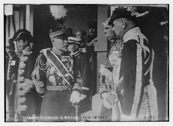 | Keywords: Terauchi & British & Russian Ambassadors (LOC) (21516622118).jpg Bain News Service publisher Terauchi British Russian Ambassadors between ca 1915 and ca 1920 1 negative glass ; 5 x 7 in or smaller Notes Title from data provided by the Bain News Service on the negative Photograph shows Count Terauchi Masatake 1852-1919 who was a Gensui Marshal in the Imperial Japanese Army and served as Prime Minister 1916-1918 with ambassadors Source Flickr Commons project 2014 Forms part of George Grantham Bain Collection Library of Congress Format Glass negatives Rights Info No known restrictions on publication Repository Library of Congress Prints and Photographs Division Washington D C 20540 USA http //hdl loc gov/loc pnp/pp print hdl loc gov/loc pnp/pp print General information about the Bain Collection is available at http //hdl loc gov/loc pnp/pp ggbain hdl loc gov/loc pnp/pp ggbain Higher resolution image is available Persistent URL http //hdl loc gov/loc pnp/ggbain 25120 hdl loc gov/loc pnp/ggbain 25120 Call Number LC-B2- 4303-7 https //www flickr com/photos/library_of_congress/21516622118/ Terauchi British Russian Ambassadors LOC LOC-image ggbain 25120 https //www flickr com/people/8623220 N02 The Library of Congress http //www loc gov/rr/print/195_copr html noknown The Library of Congress Flickr Commons PD-Bain The Library of Congress https //flickr com/photos/8623220 N02/21516622118 2016-09-08 07 14 53 pd Uncategorized 2016 October 28 |