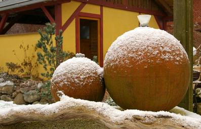 Keywords: terracotta balls terracotta balls garden lights decoration garden decoration garden gartendeko garden design winter snow wintry cold snow mediterranean rest deco